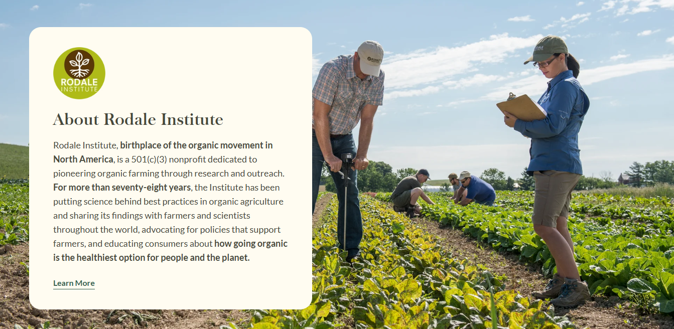 Rodale Institute is a 501(c)(3) nonprofit conducting independent research to uncover and share regenerative organic farming practices that restore soil health, fight climate change, and fix the food system.